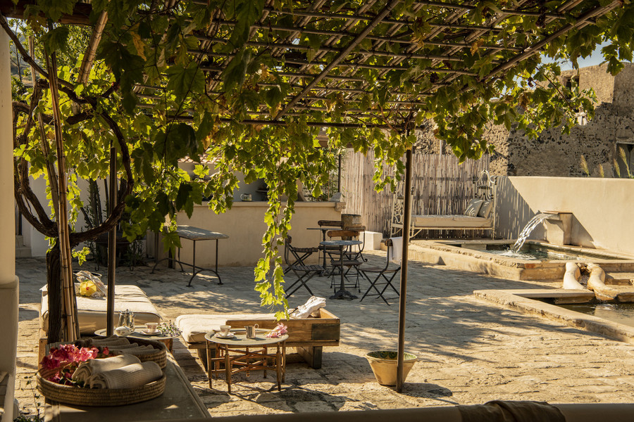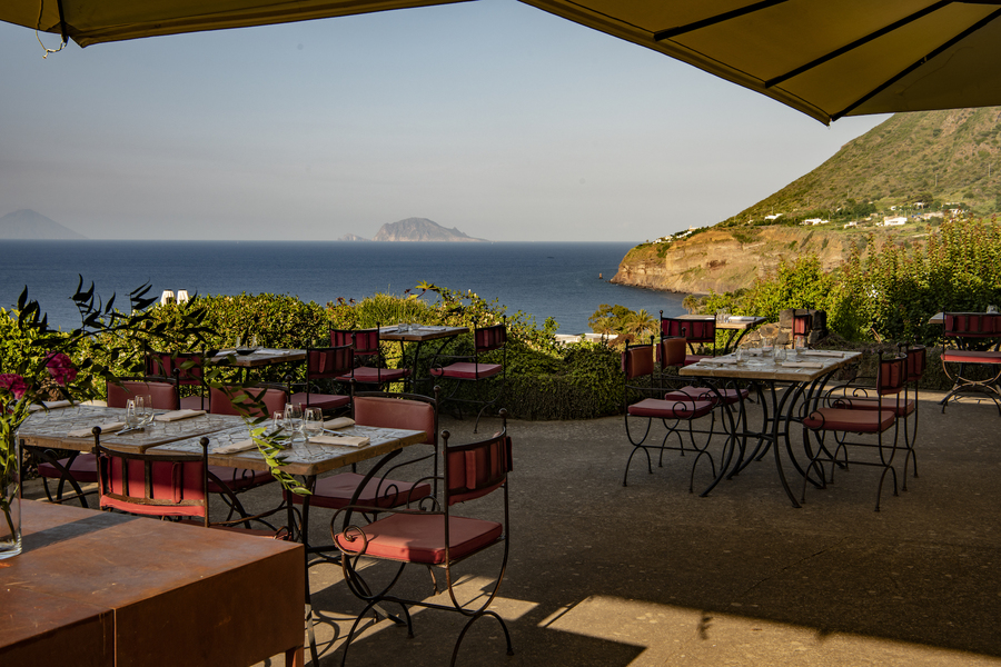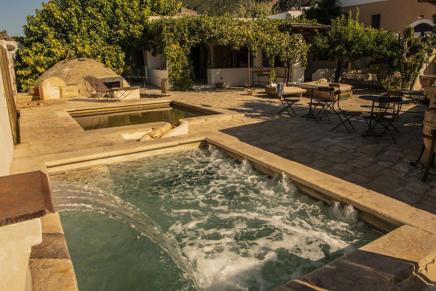 The 30 rooms and suites are bright, airy retreats, each individually styled in traditional Aeolian fashion. Named after native plants, they feature natural materials, soft hues and private terraces or balconies, with views over gardens or sea—creating a serene, sensory connection to the island.