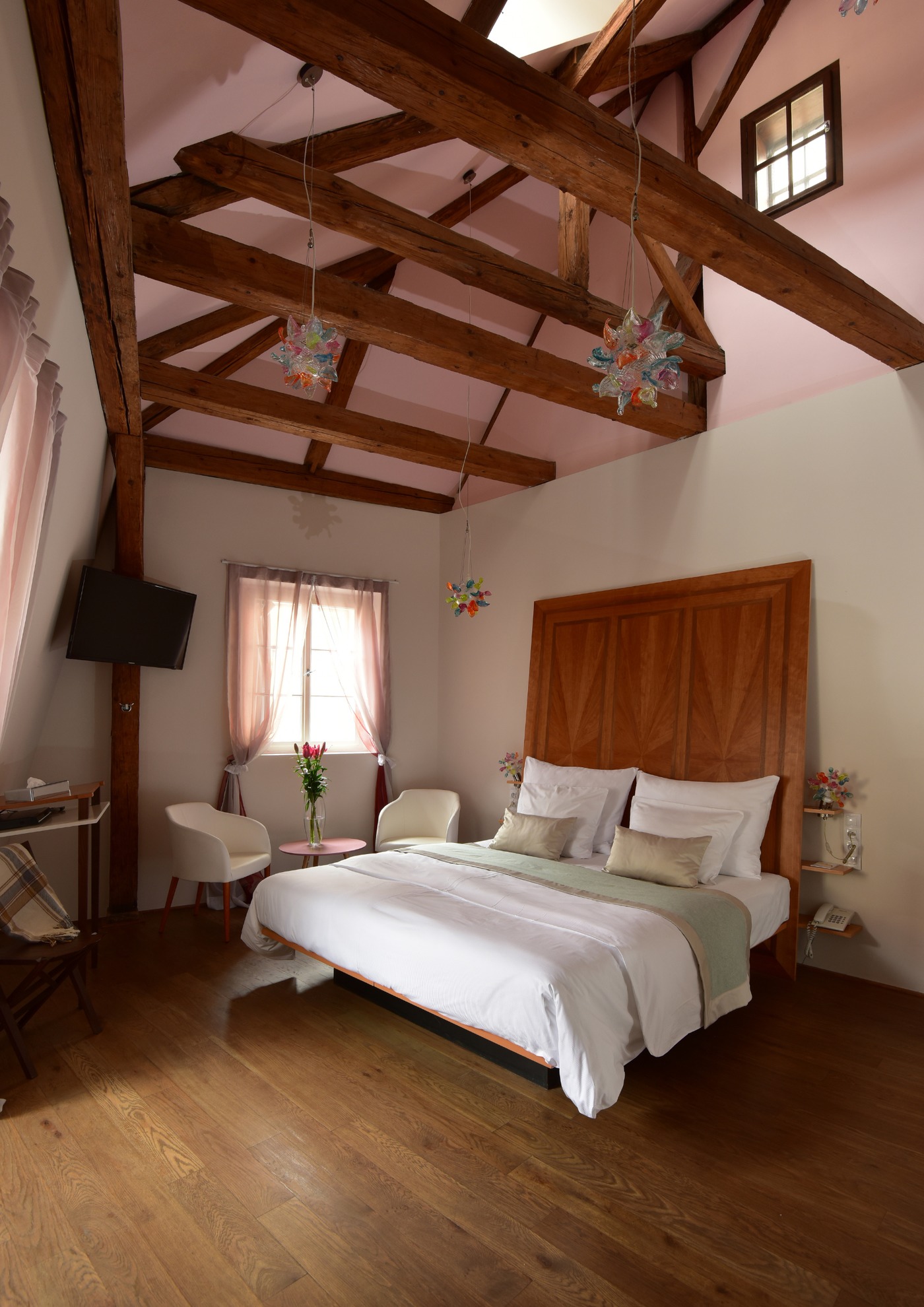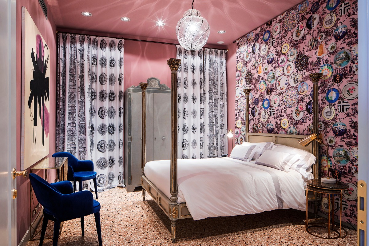Hotel Heureka juxtaposes Venetian history with contemporary vibrancy. Exposed beams, Venetian plaster, and architectural flourishes meet bold colours and playful artwork. Rooms feel both intimate and theatrical, balancing old-world charm with modern expression.