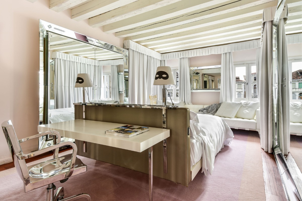 Palazzina is a theatrical ode to Venetian elegance and modern audacity. Philippe Starck’s design fuses gilded opulence with playful contemporary accents, bold lighting, and curated art pieces. From intimate lounges to canal-facing terraces, every space encourages engagement with Venice’s lively spirit.