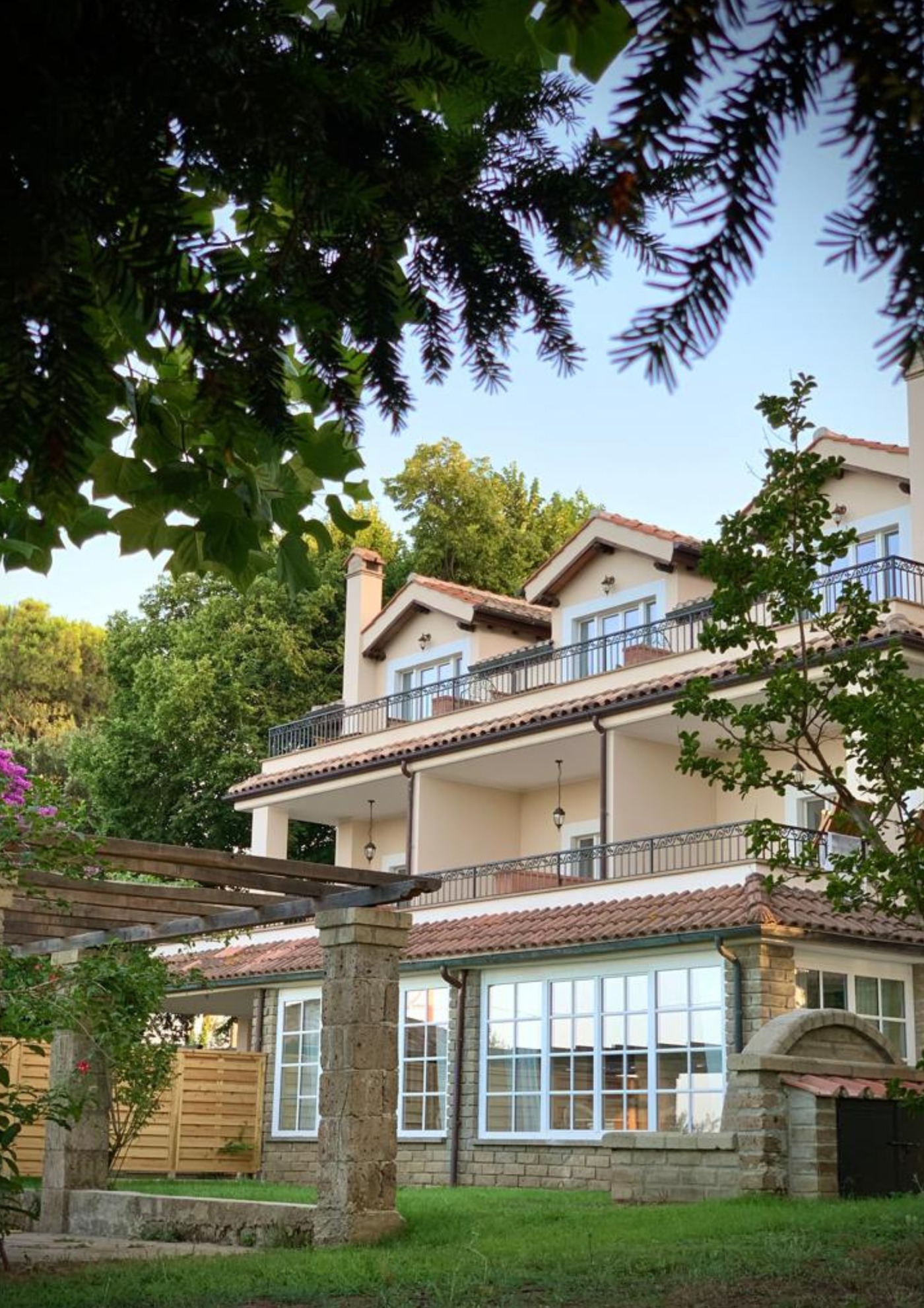 Poggio Delle Molare sits like a jewel among the rolling vineyards of Bracciano. Here, terraces are lined with seasonal blooms, olive trees hum in the breeze, and the distant lake catches the light in the afternoons. Wander through olive groves, dip into the outdoor saltwater pool, or lose yourself in the terraced gardens. Every path feels like a secret invitation — whether to pause for a glass of wine as the sun sets or to simply breathe in the serenity that makes this Italian countryside so irresistibly enchanting.